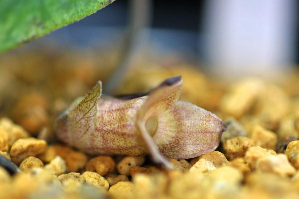 他の葉に隠れて咲いたのに気が付かなかったので額片が痛んでいる
